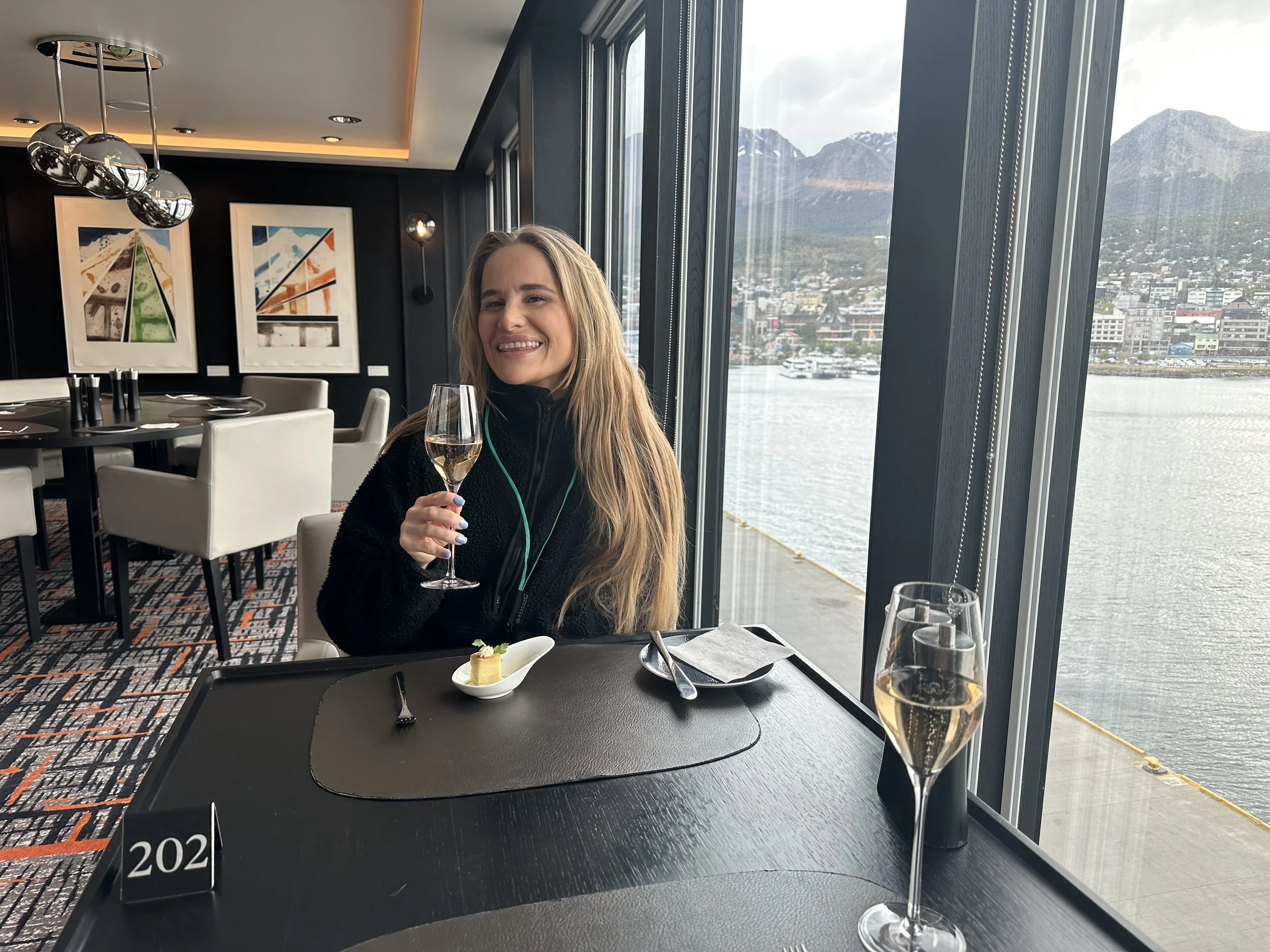 There is no dress code for dinner. People wear practical clothes, comfortable knits and relaxed trousers. Life onboard feels like a cozy boutique hotel at sea, so pack clothes that makes you feel relaxed and comfortable.